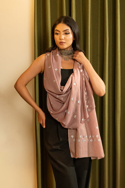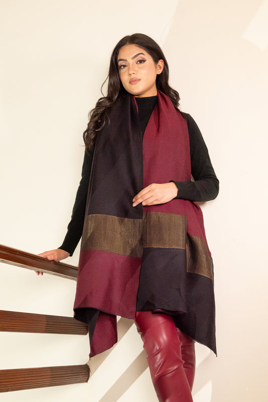 Cashmere Dual Coloured Stole with Gold Zari Band